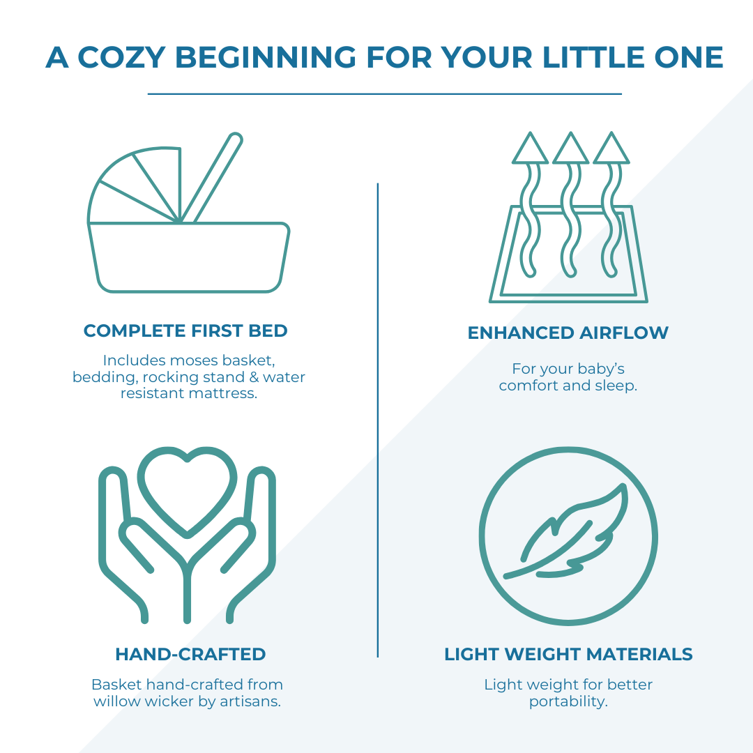 The included rocking stand is designed to soothe your little one into a peaceful slumber. Its gentle rocking motion mimics the comforting movements that babies love, making it an essential piece for bedtime routines. Made with meticulous attention to detail, the basket features a hypo-allergenic mattress that prioritizes your baby’s health. The extra padding ensures that your child rests securely and comfortably as they drift off to sleep.